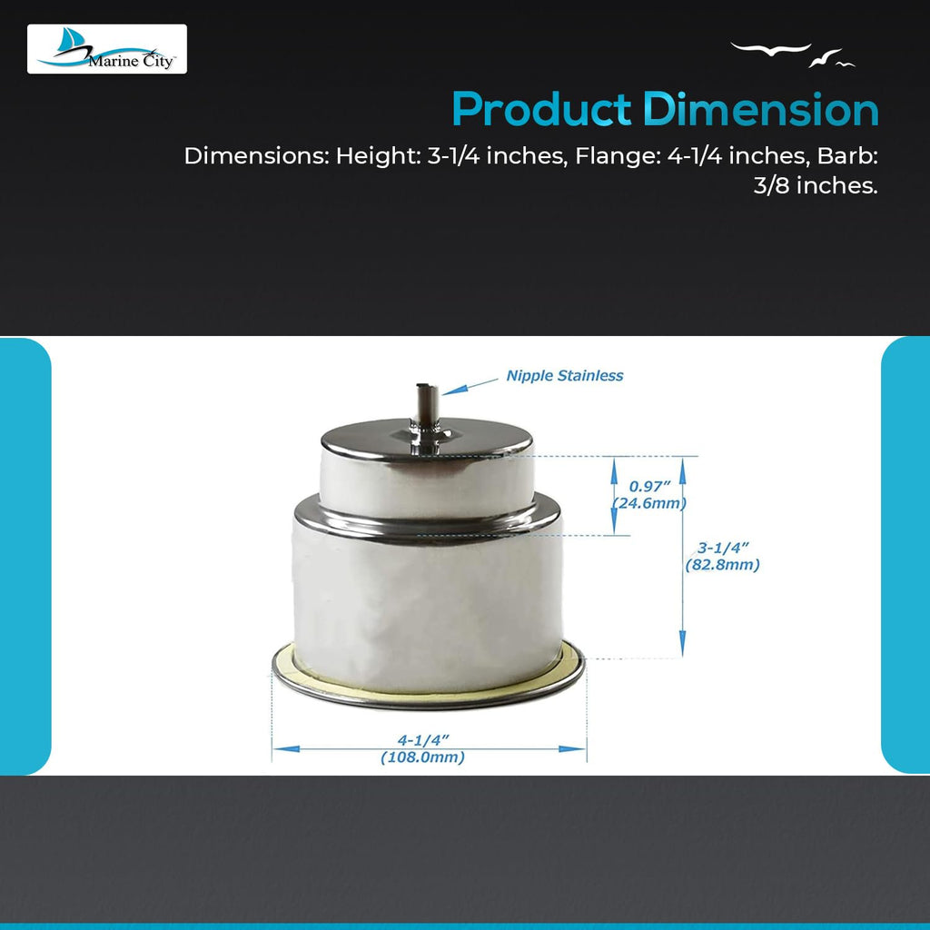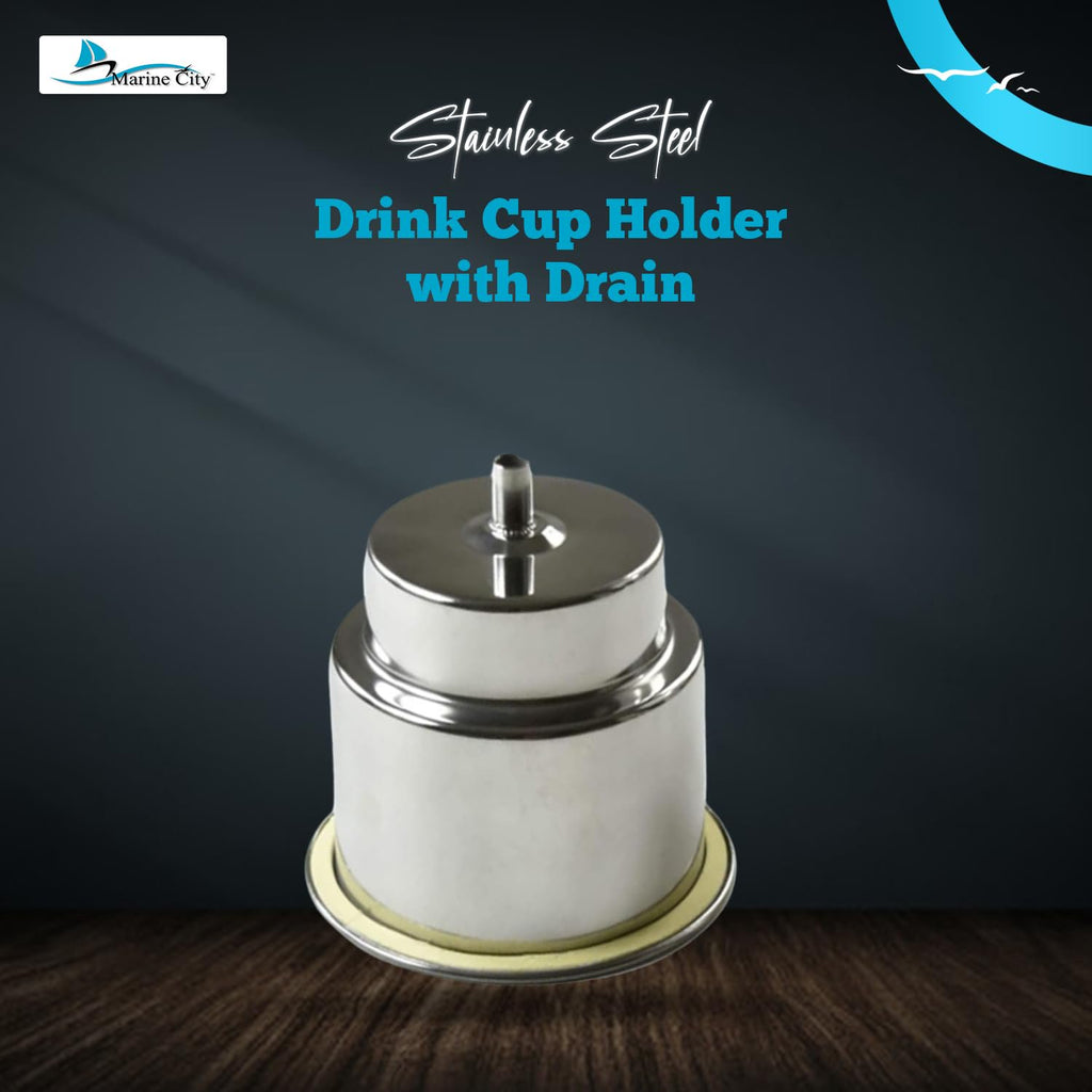 • Portabebidas de acero inoxidable con tubo de drenaje de 3/8" para embarcaciones marinas y vehículos recreativos