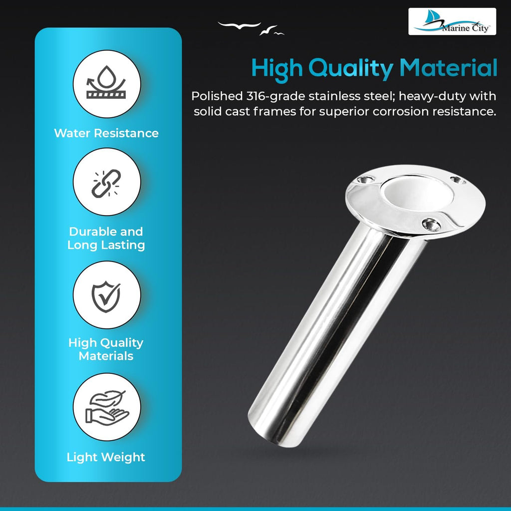 316 Stainless Steel Flush-Mount Rod Holder 30° - Marine City – Marine City Hardware