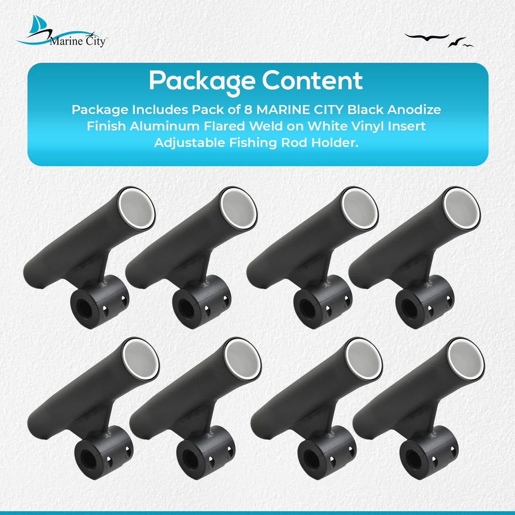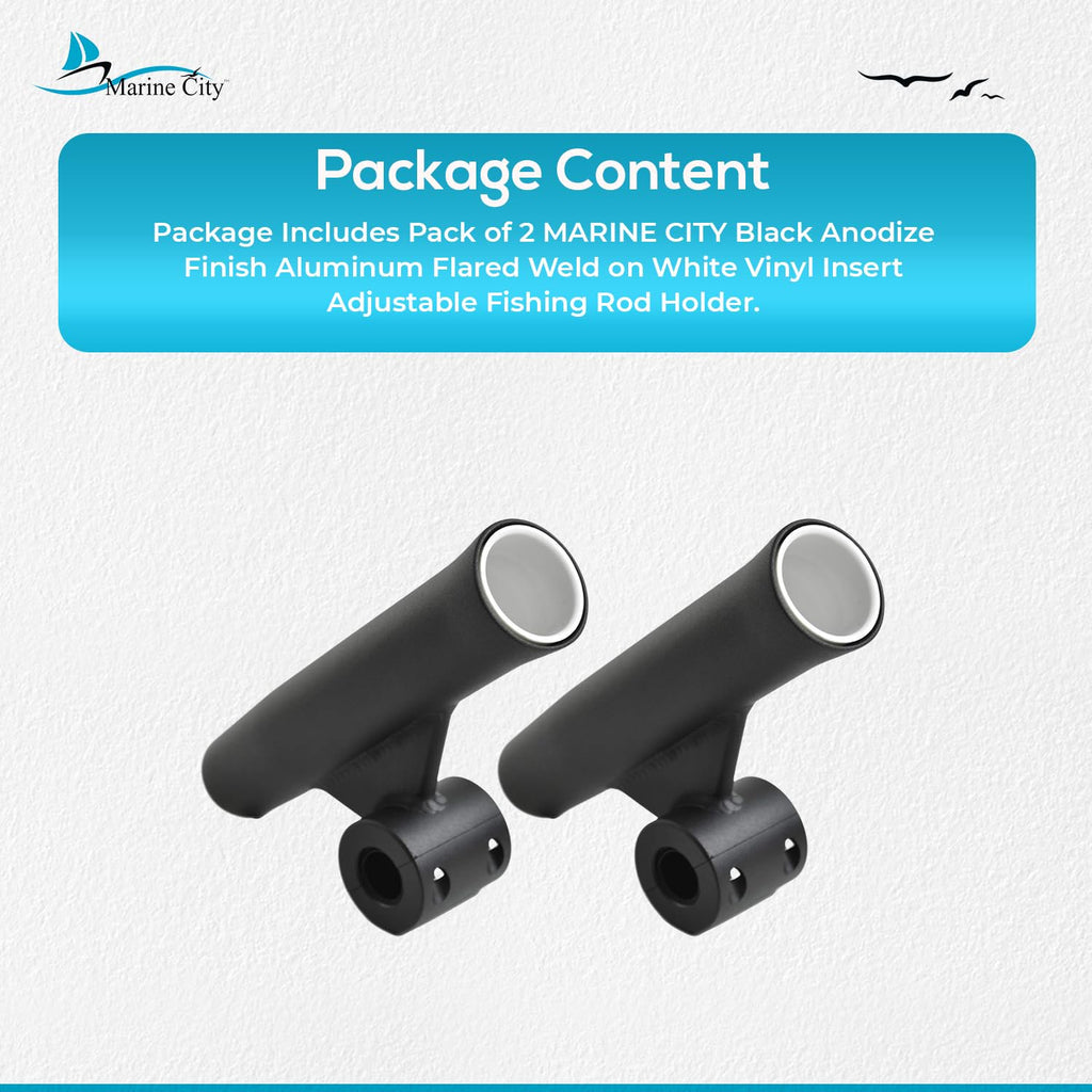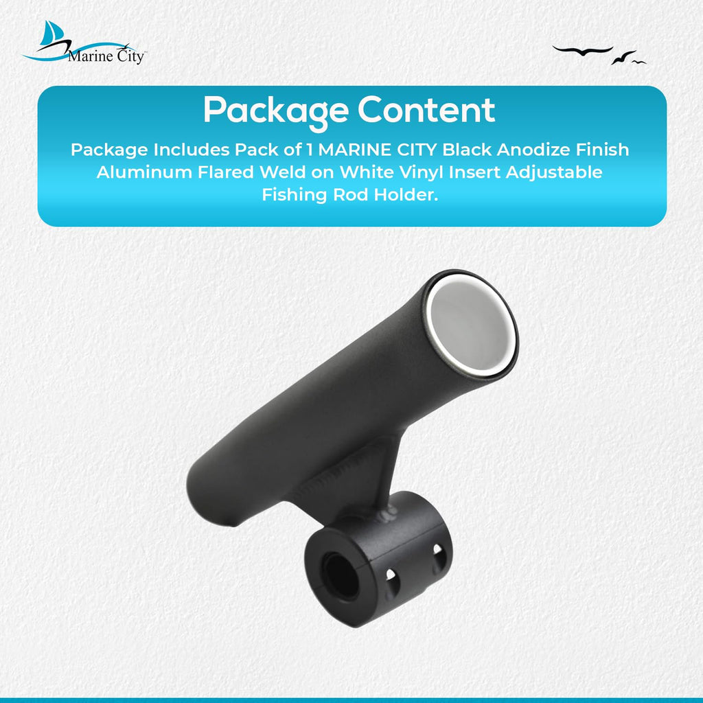 Marine City Soporte para caña de pescar con inserto de vinilo blanco soldado con acabado anodizado negro (longitud 10 pulgadas de diámetro 1-7/8 pulgadas)