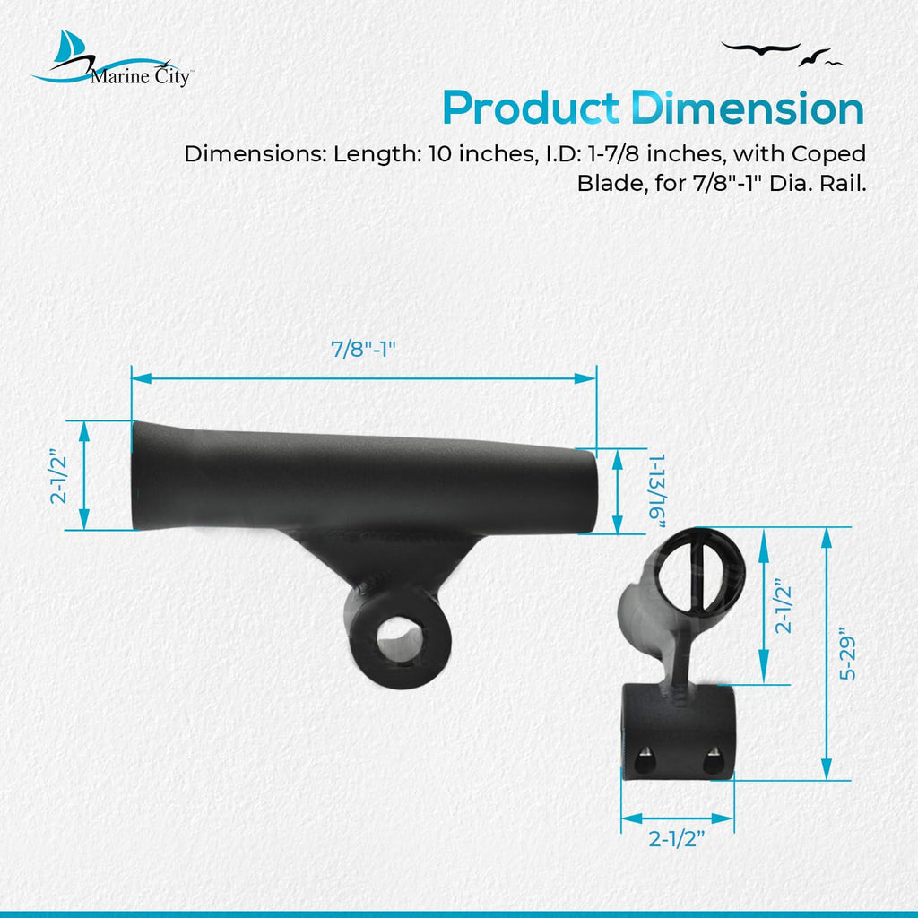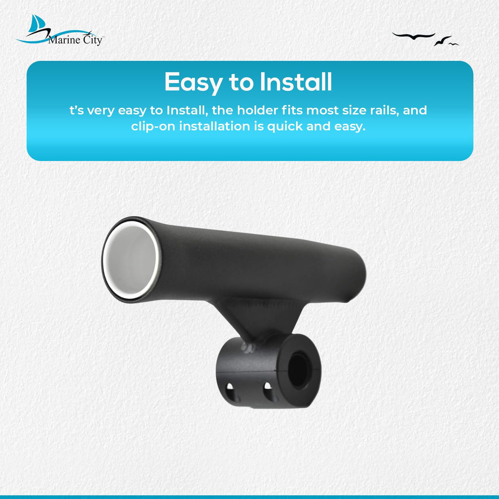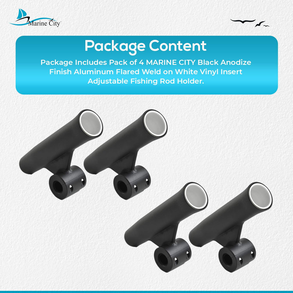 Marine City Soporte para caña de pescar con inserto de vinilo blanco soldado con acabado anodizado negro (longitud 10 pulgadas de diámetro 1-7/8 pulgadas)