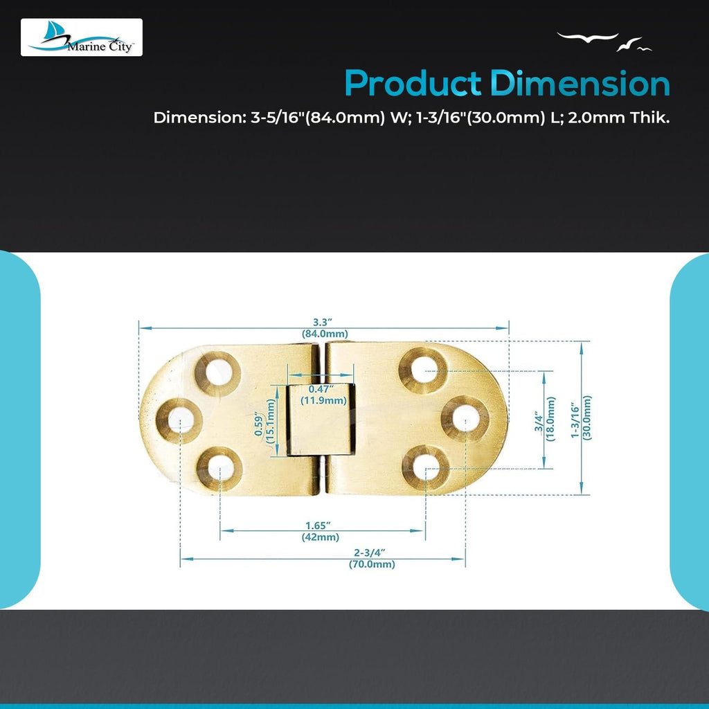 MARINE CITY Montaje de escotilla de 180° de latón/bisagra oculta para barcos, encimeras de caravanas, mesas, gabinetes (3-5/16" x 1-3/16")