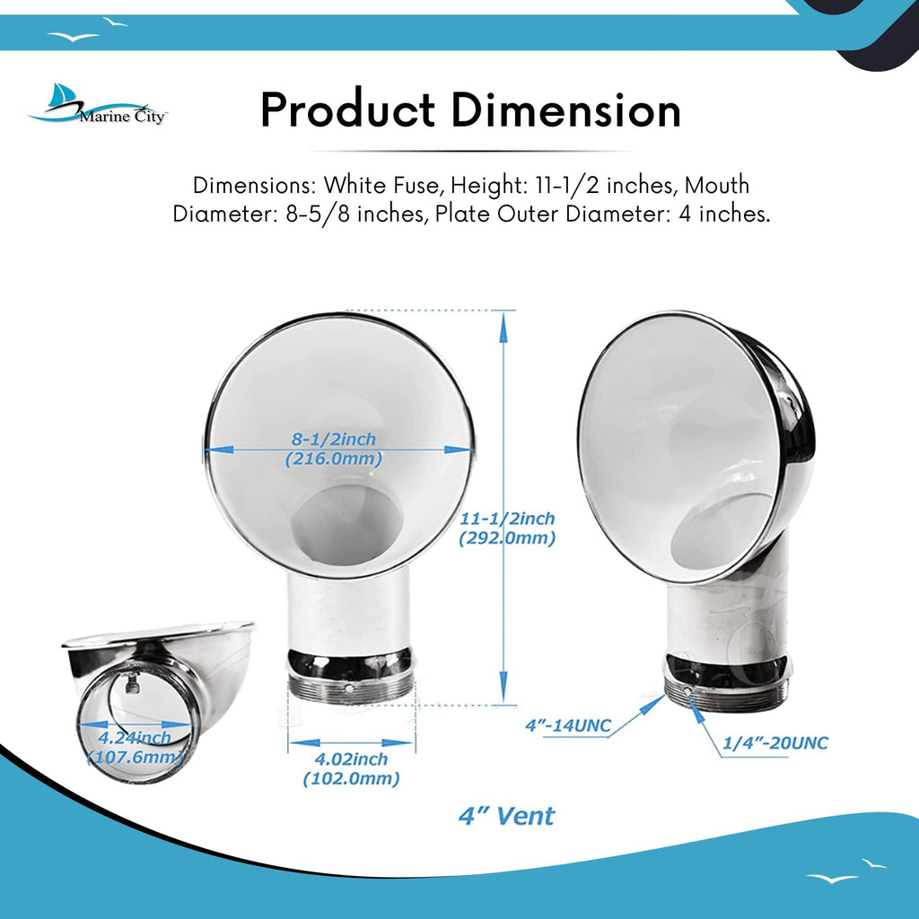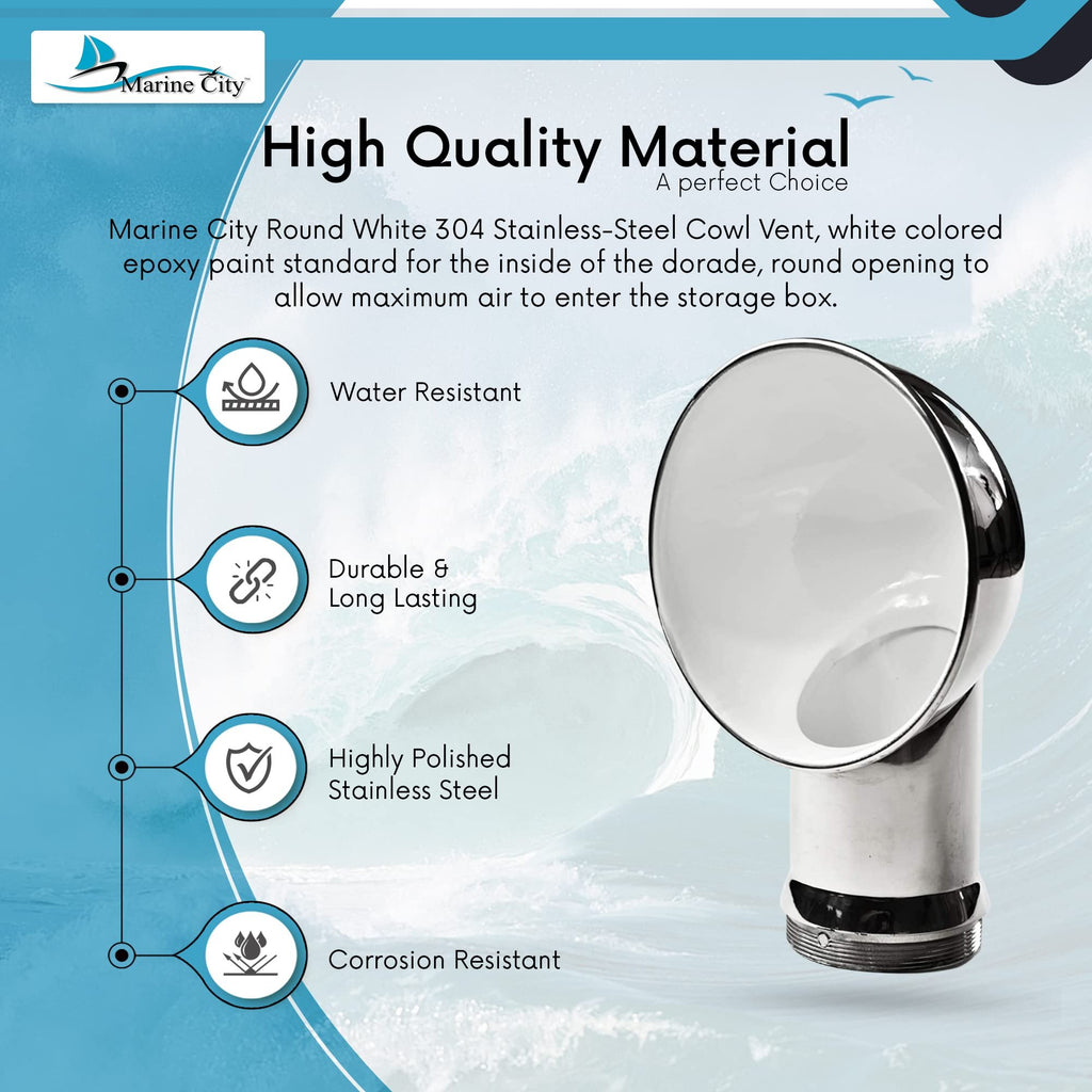 304 Stainless Steel 4-Inch White Cowl Vent | Marine City – Marine City Hardware