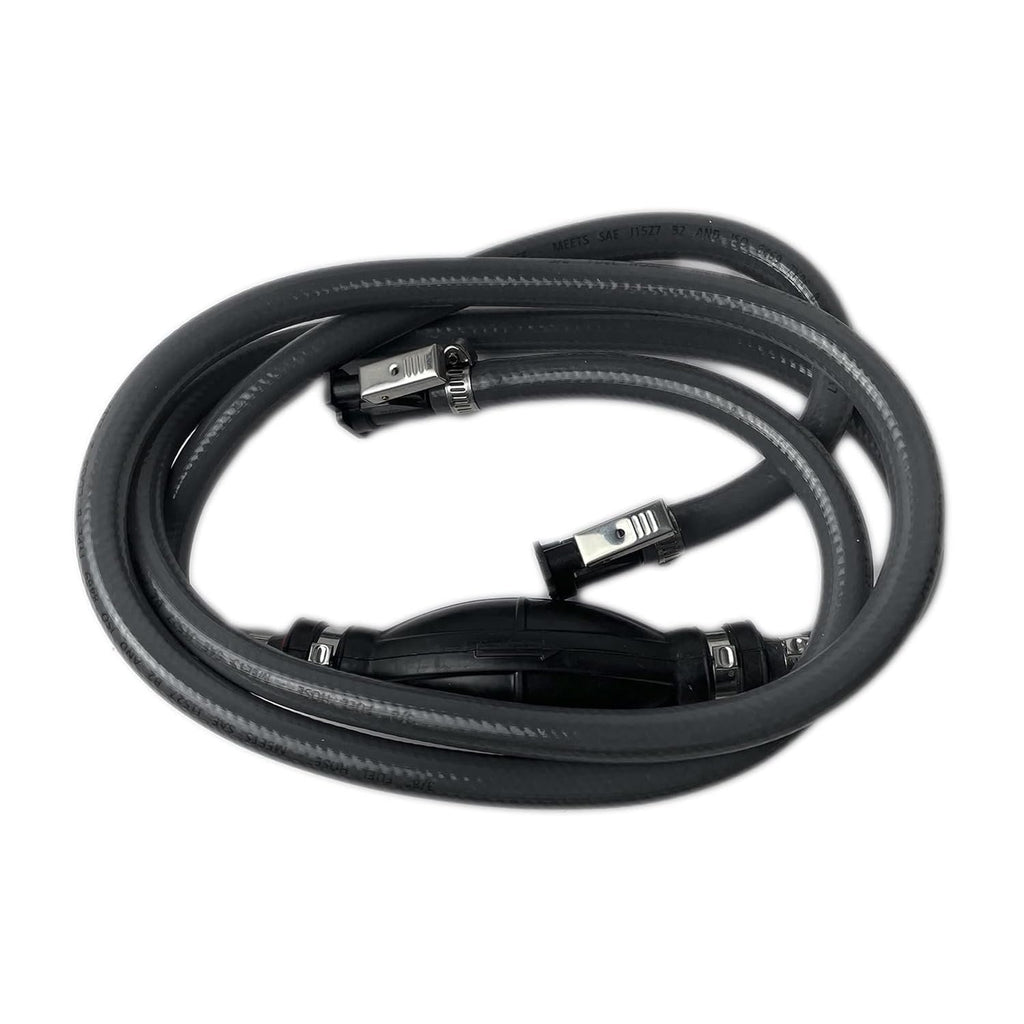 • • Bomba de bulbo de caucho de alta calidad y manguera de combustible de diámetro exterior de 5/8". Hay flechas marcadas en el cuerpo de la válvula para mostrar la dirección del flujo de fluido para evitar que el combustible regrese al tanque y lo mantenga en la tubería.