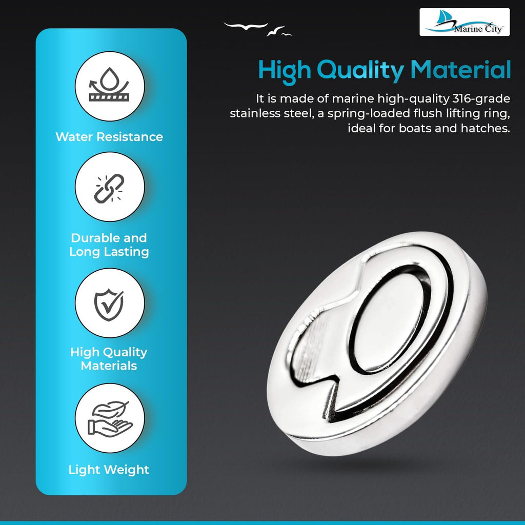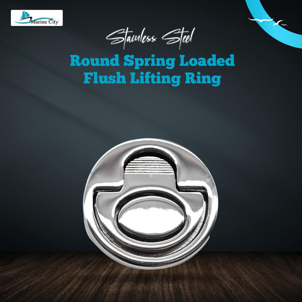Marine City 316 Tirador de anillo/manija de elevación redonda con resorte de 2 pulgadas de acero inoxidable para puertas, escotillas (1 unidad)