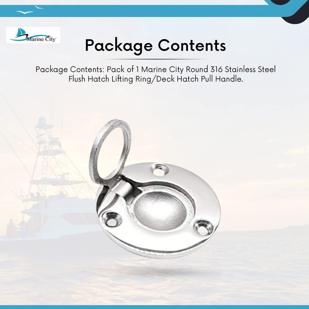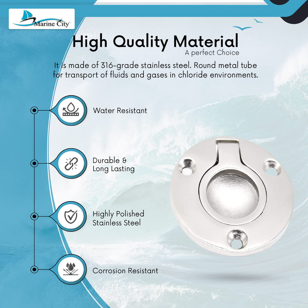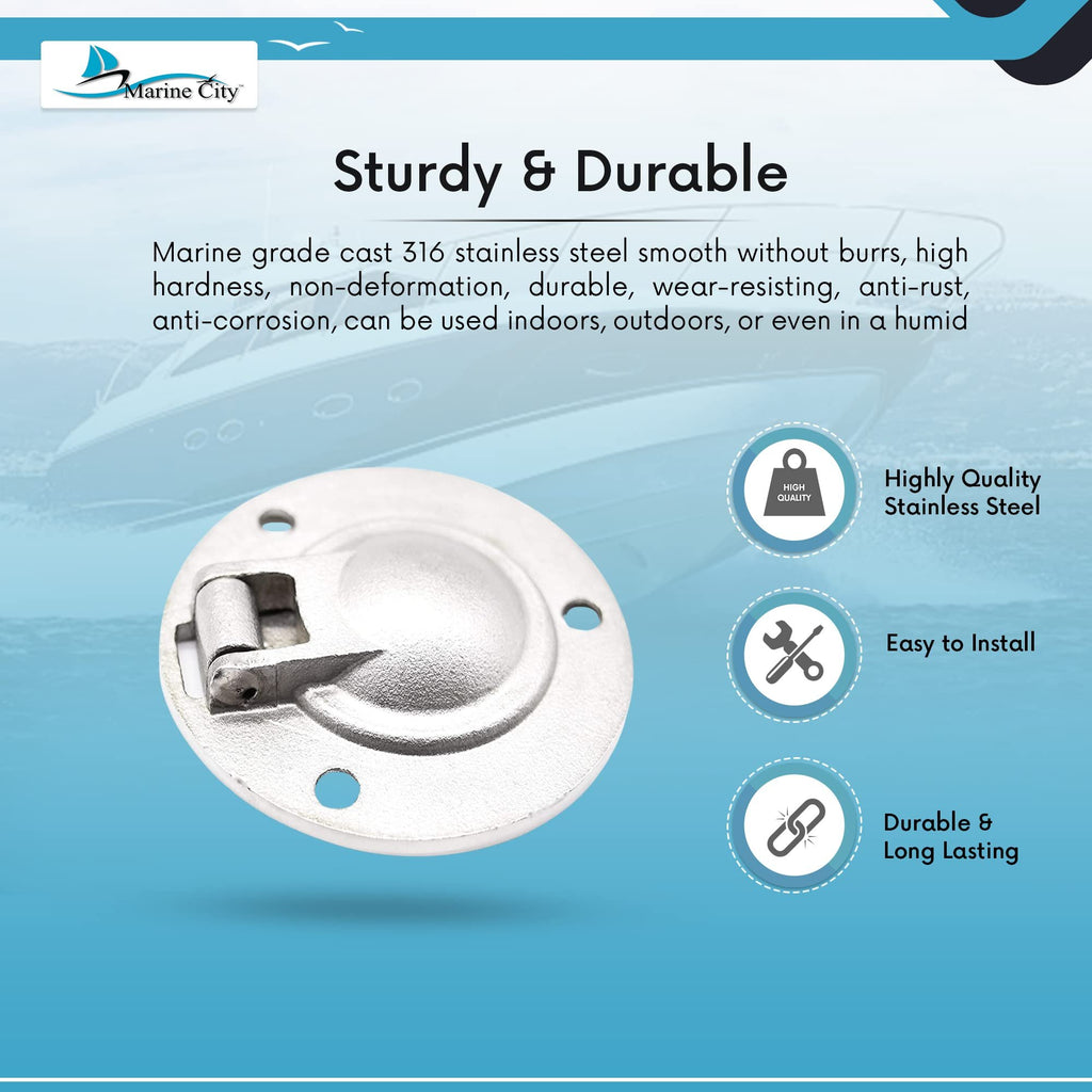 Marine City Anillo de elevación redondo de acero inoxidable 316 para escotilla empotrada/manija para tirar de escotilla de cubierta (1 unidad)