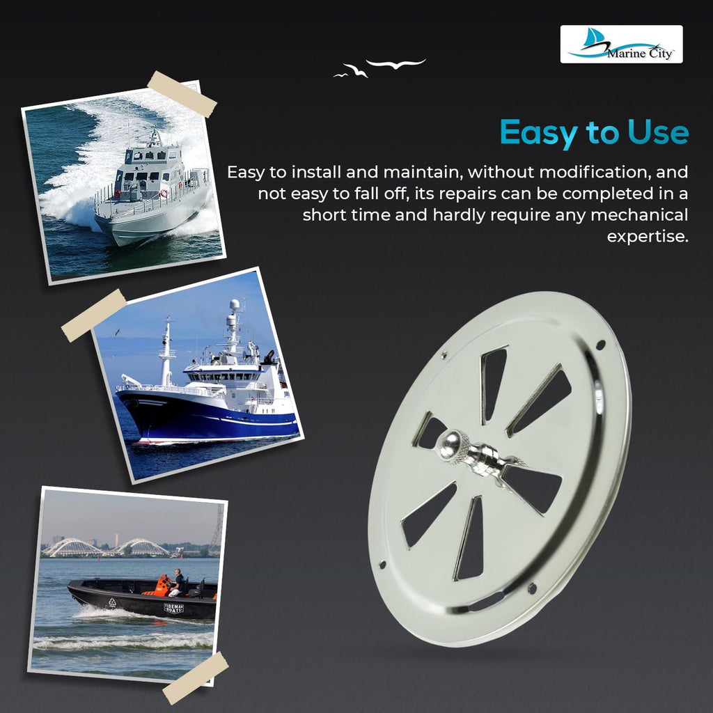 • Contenido del paquete: 1 pieza MARINE CITY de acero inoxidable con ventilación de mariposa redonda de 6" con perilla central y ventilación de persiana