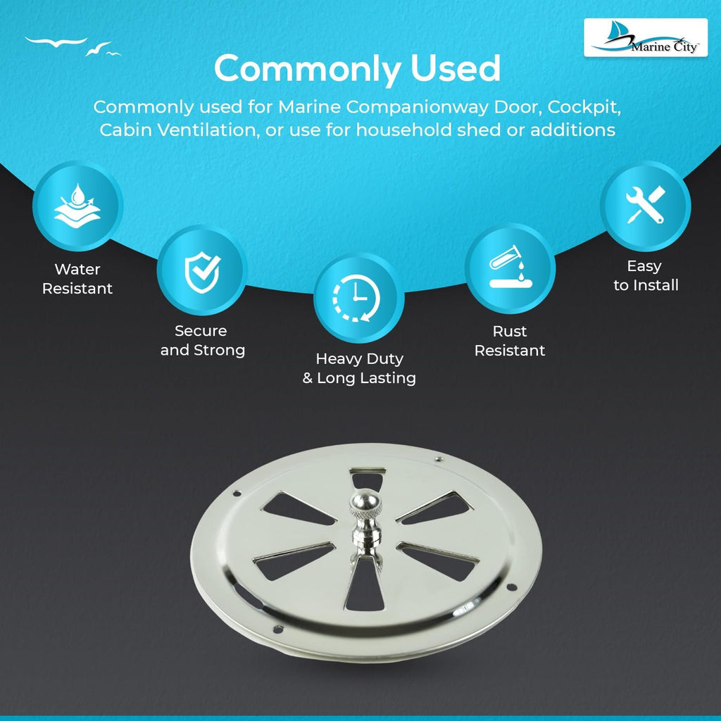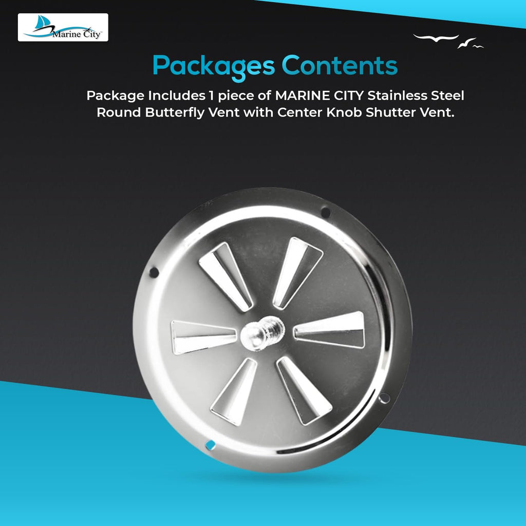 • Contenido del paquete: 1 ventilación de mariposa redonda de acero inoxidable MARINE CITY de 6 pulgadas con perilla central de ventilación.