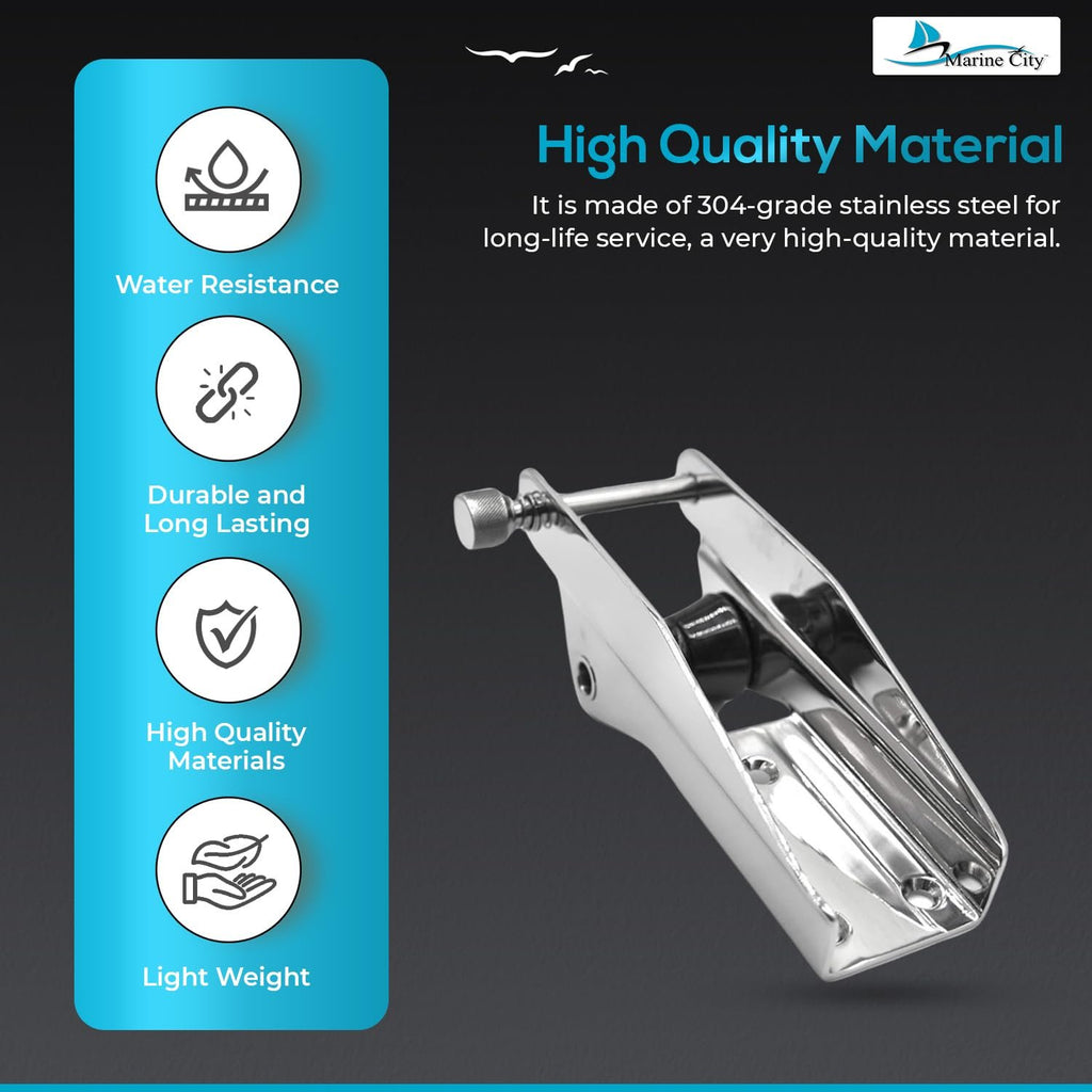 About Us Here at Marine City Hardware, we specialize in marine hardware products. We are all family and are all working together to bring our customers exactly what they need. Our motto is high quality, low prices, fast shipping, and taking care of our customers. Everything is double-checked and electronically tested before being sent out to ensure the highest quality. Our company provides retail and wholesale services so you may also contact us if you want to order our products in bulk as well. Our exceptional prices and superior manufacturing company make us the best around for any marine products. 100% Customer Satisfaction is our ultimate goal so we encourage you to message us because we will work for you. Feature • It is made of 304 grade stainless steel. • Captive ball lock pin holds line or chain securely in the channel. • Easily raises and lowers the anchor without damaging the topsides. Superior Build Quality It is made of 304 grade stainless steel. Captive ball lock pin holds line or chain securely in the channel. Easily raises and lowers the anchor without damaging the topsides.