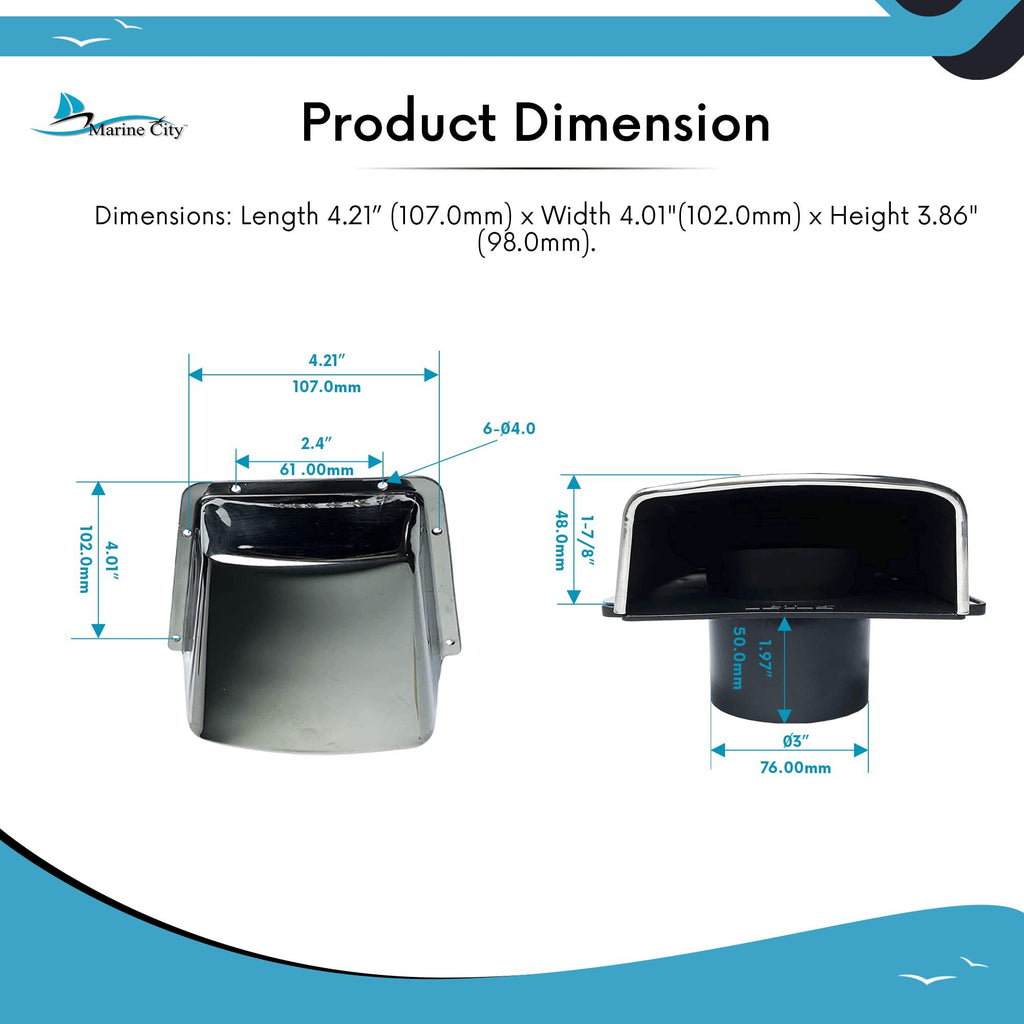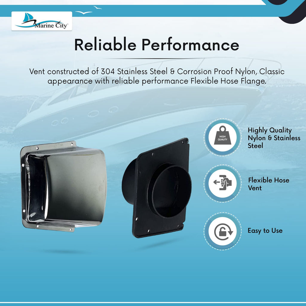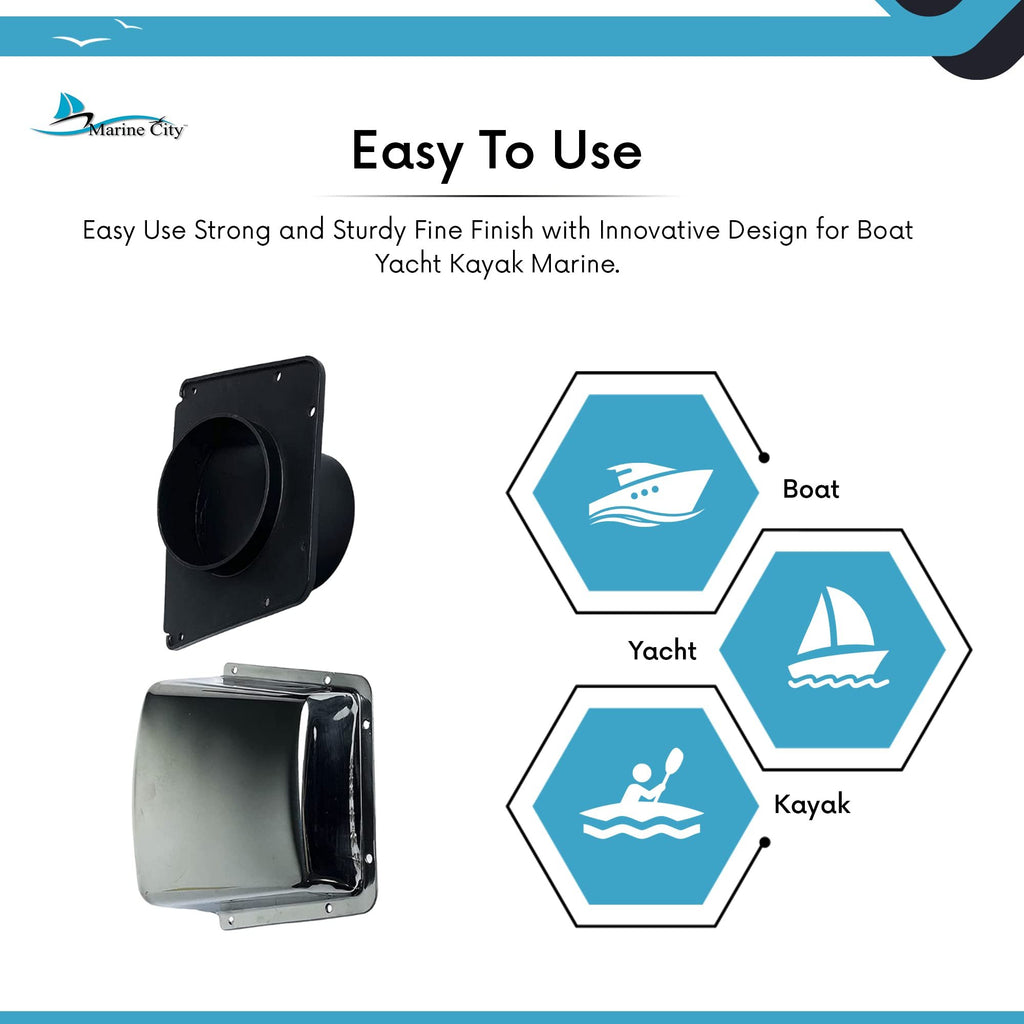 The Marine City Intake and Exhaust Cowl Ventilator is engineered to provide reliable airflow and effective ventilation for marine vessels. Constructed from marine-grade 304 stainless steel combined with corrosion-proof nylon components, this ventilator is built to withstand harsh marine environments.