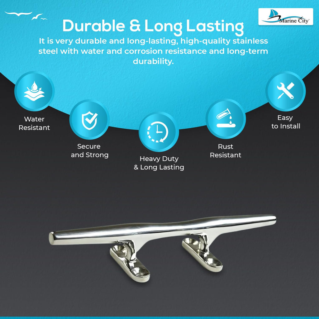 Secure your vessel with confidence using the Marine City 10-Inch Dock Cleat (Pack of 4). Constructed from premium 316-grade stainless steel, these cleats are engineered to withstand harsh marine environments. Rust-proof, weatherproof, and corrosion-resistant, they are ideal for both saltwater and freshwater applications.
