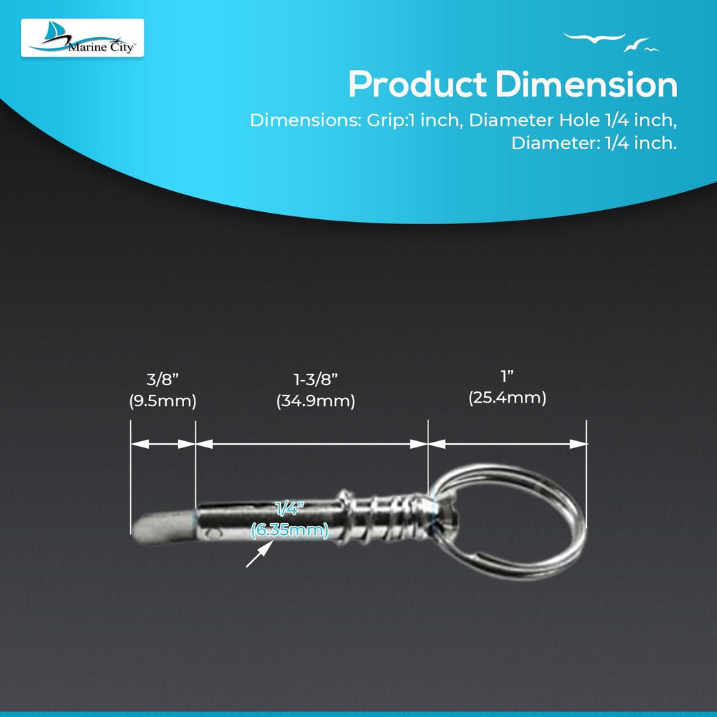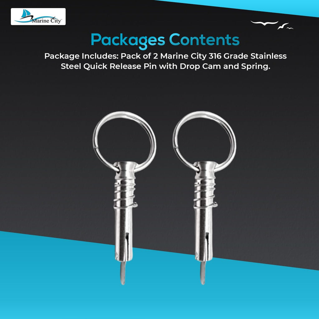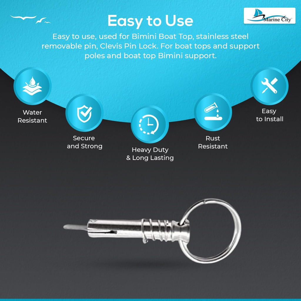 The Marine City 316 Stainless Steel Quick Release Pin with Drop Cam and Spring is a premium marine hardware accessory designed for Bimini tops, deck hinges, and boat support poles. Crafted from 316-grade marine stainless steel, this pin is highly durable, corrosion-resistant, and built to withstand harsh saltwater environments.