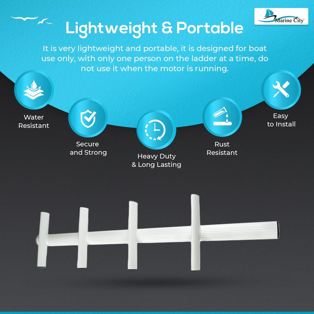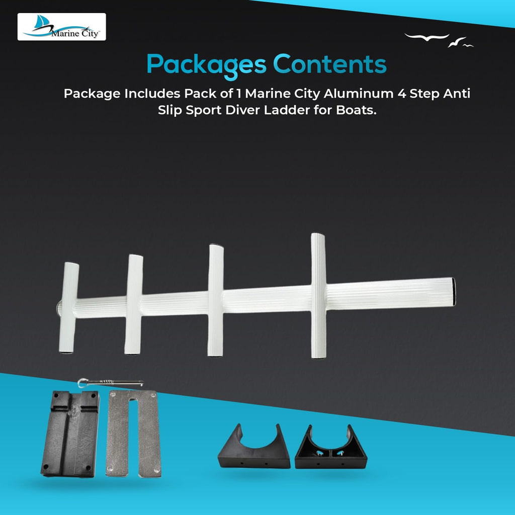 Whether you’re diving, kayaking, or enjoying recreational boating, the Marine City 4-Step Sport & Diver Ladder delivers marine-grade durability, portability, and safe water access.