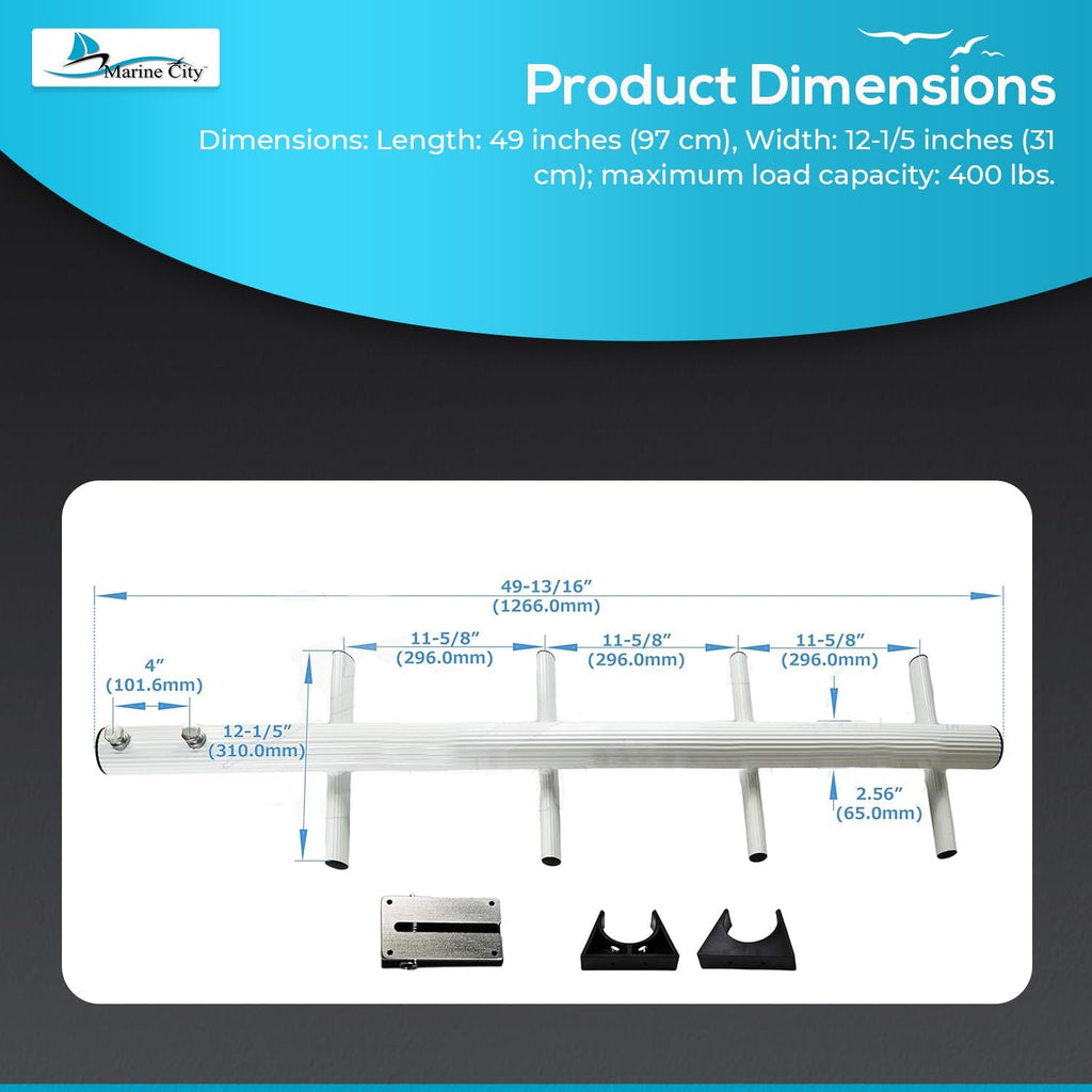 The quick-release mounting bracket allows fast installation and removal, making it convenient for portable use. Its 49-inch length offers extended reach from deeper water, while the lightweight aluminum design ensures it is easy to carry, store, and transport. The ladder’s 400 lb maximum load capacity provides stability and confidence for all users.
