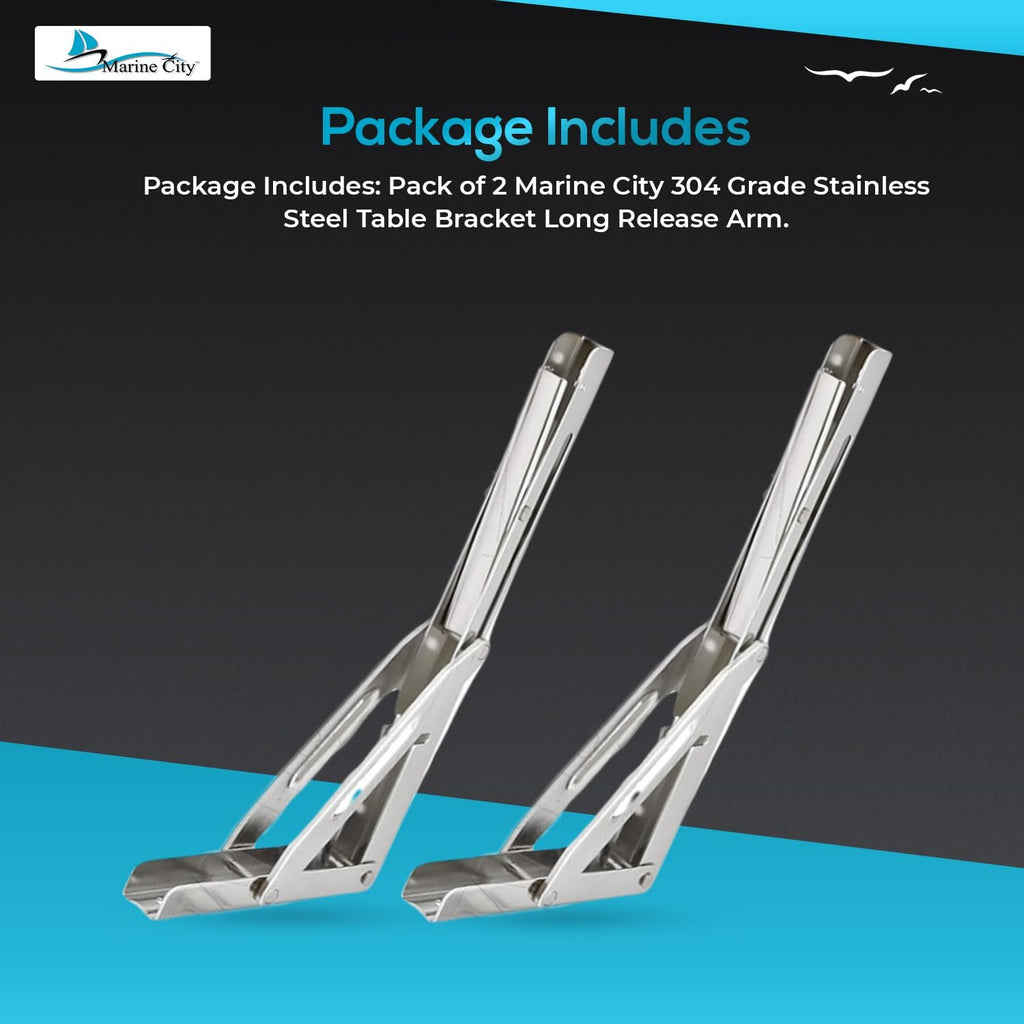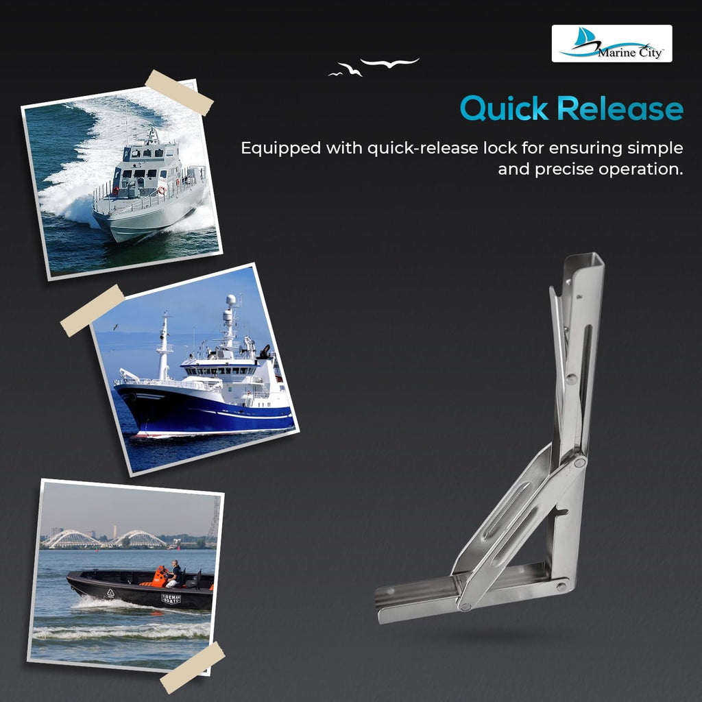 The Marine City 304 Stainless Steel Table Bracket Long Release Arm combines professional-grade strength, durability, and space-saving convenience for marine, RV, and home applications. Crafted from polished 304 stainless steel, this folding shelf bracket is corrosion-resistant, rust-proof, and acid-resistant, ensuring long-lasting performance even in harsh environments.