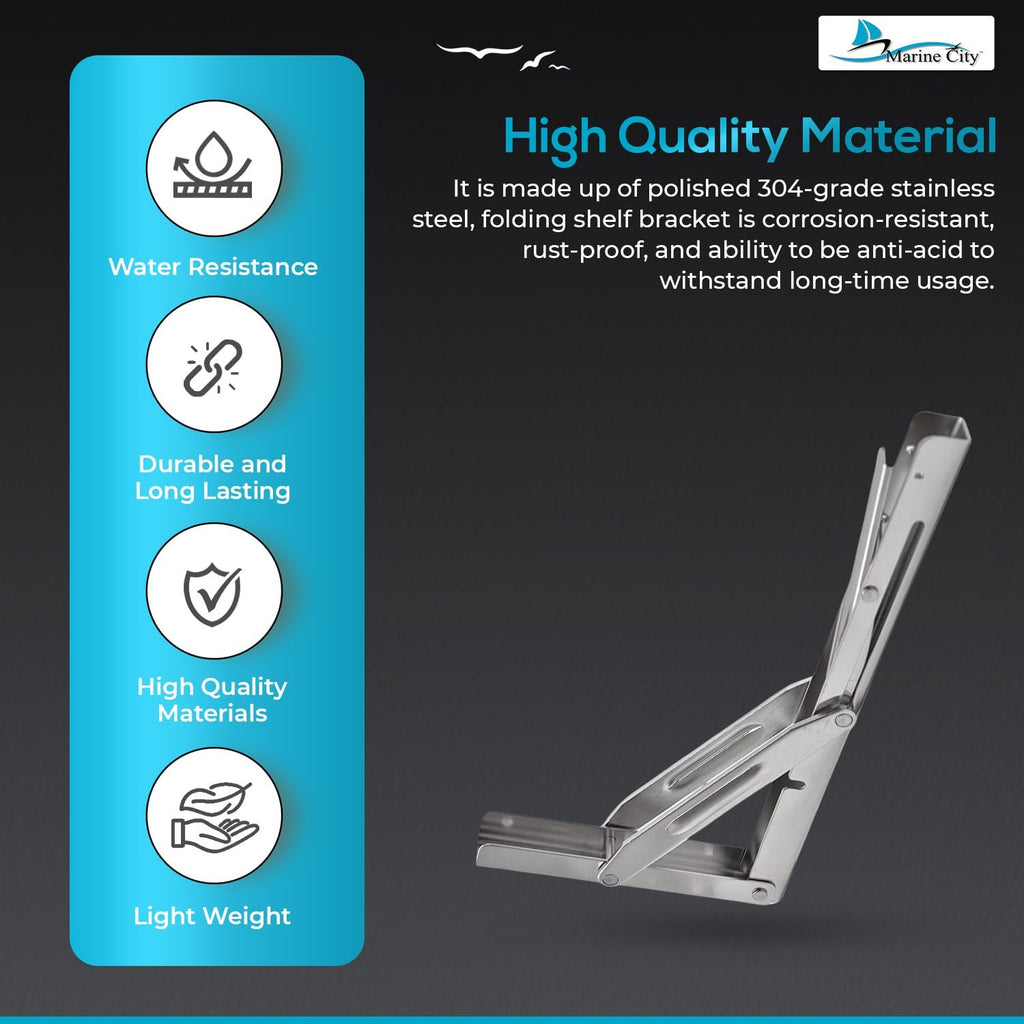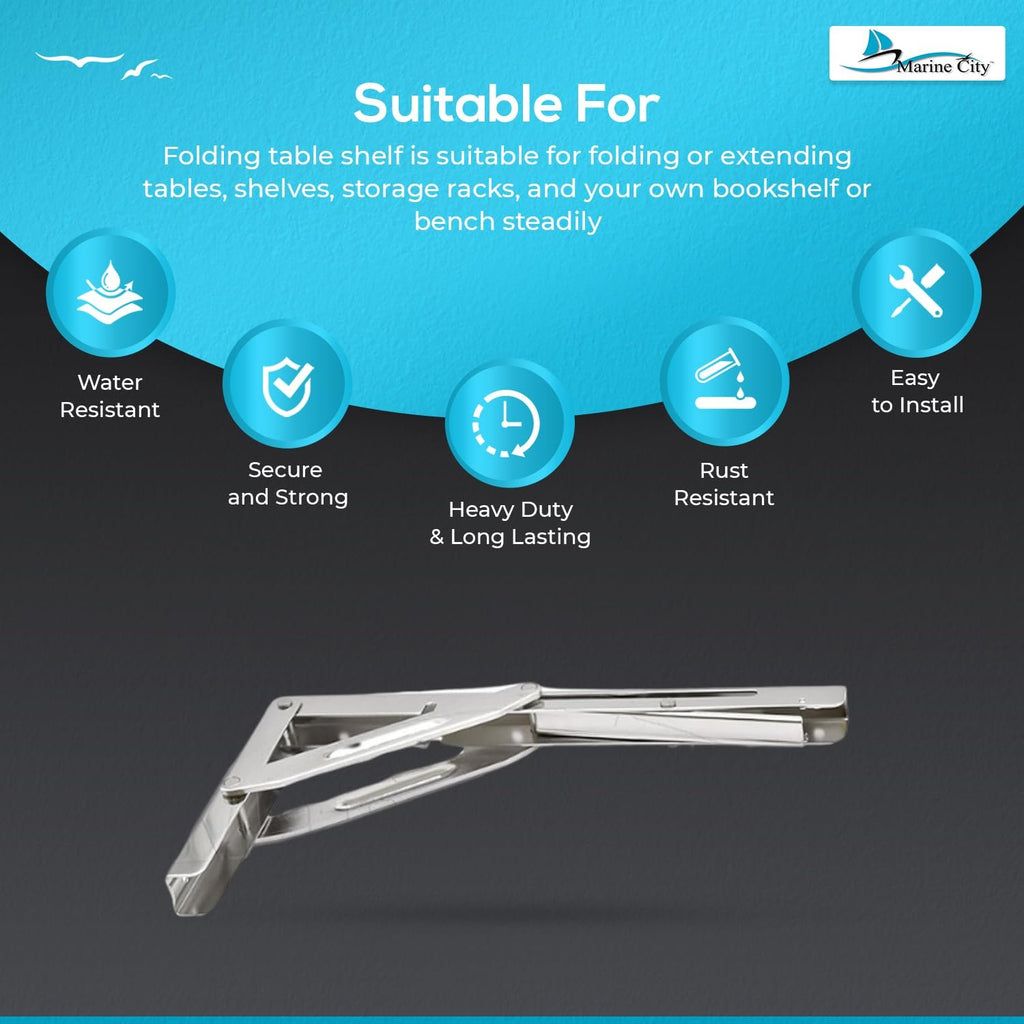 Perfect for boats, yachts, RVs, or home workshops, this bracket delivers reliable strength, superior performance, and an elegant, space-saving solution for heavy-duty folding shelves or tables.