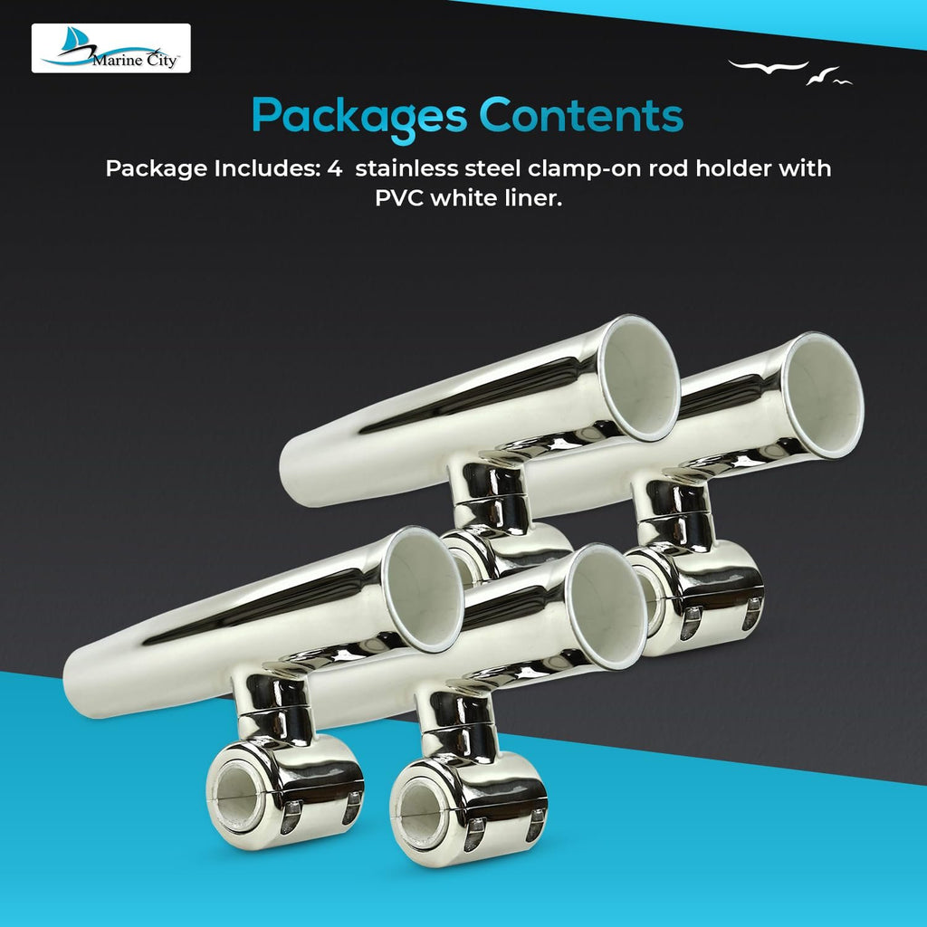 Marine City Adjustable Fishing Rod Holder – 304 Stainless Steel Clamp-On (4 Pcs)
