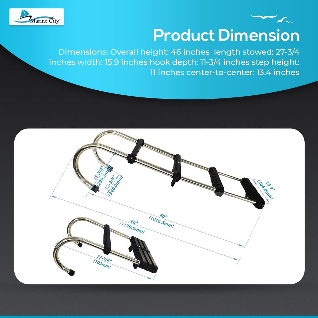 Perfect for center consoles, day cruisers, pontoons, houseboats, and smaller boats, this portable ladder offers flexibility and safety. Simply unfold and hook it securely over a strong attachment surface. Always ensure adequate clearance from propellers and other moving equipment during use.