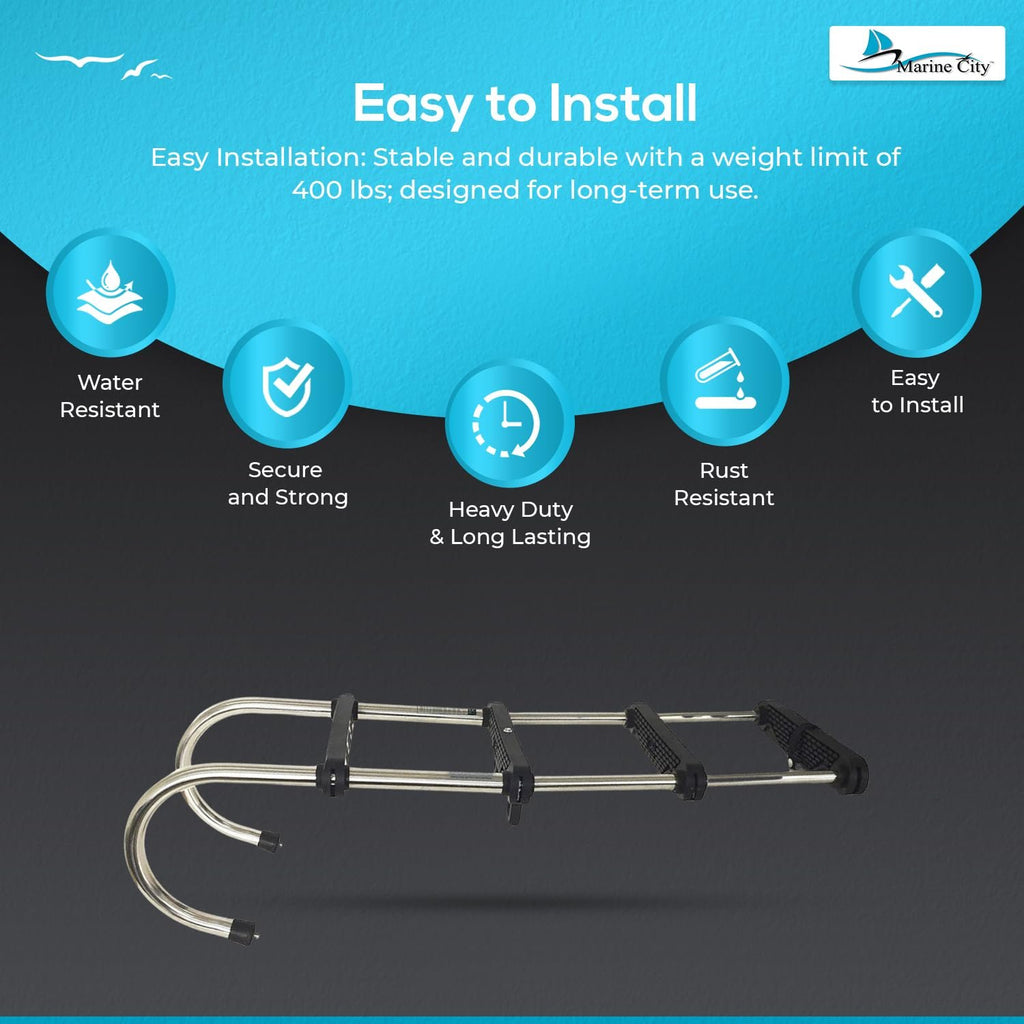 The 4-step telescoping system drops smoothly into the water for easy boarding and folds flat for compact storage when not in use. Its lightweight yet heavy-duty construction supports up to 400 lbs, providing strength and reliability for swimmers and passengers.