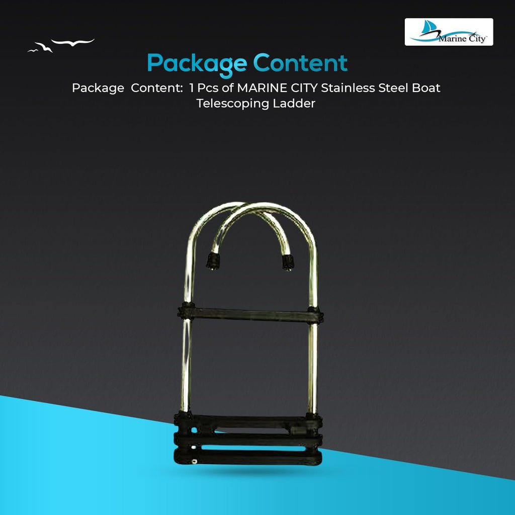 The Marine City 4-Step Stainless Steel Telescoping Ladder is designed for safe, convenient, and portable boarding access for a wide range of marine vessels. Featuring a removable gunwale hook design, this ladder easily hooks over the side of your boat for quick setup—no permanent mounting required.
