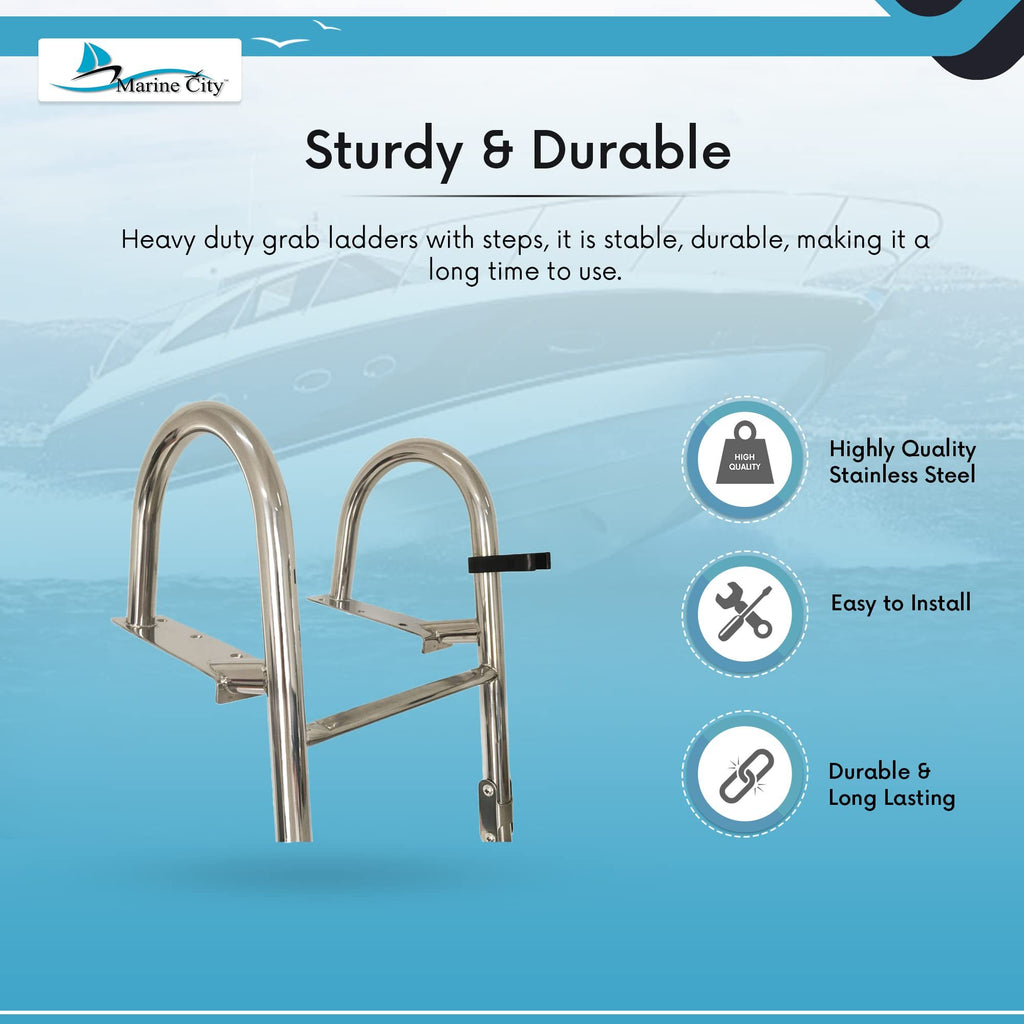 Designed for strength and stability, this ladder includes comfortable handrails and sturdy steps that support up to 400 lbs, ensuring confidence and safety during use. The sleek, low-profile design blends seamlessly with modern boats and yachts while providing long-lasting durability.